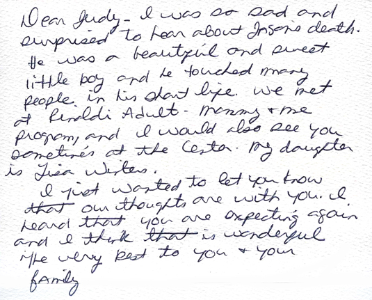 A great sympathy card. i don’t recognize the name or have any memory of the woman who wrote it, however.