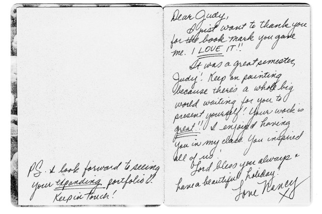 Nancy was an inspiring and demanding teacher. Her passion was a catalyst for me. I decided I could become an artist like her. I was no longer confused any more!