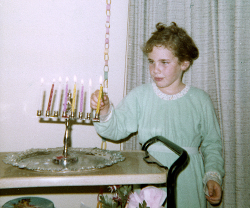The beauty of lighting candles was always in my home. I am lighting a Chanukah menorah here. I’d guess I’m about six years old.