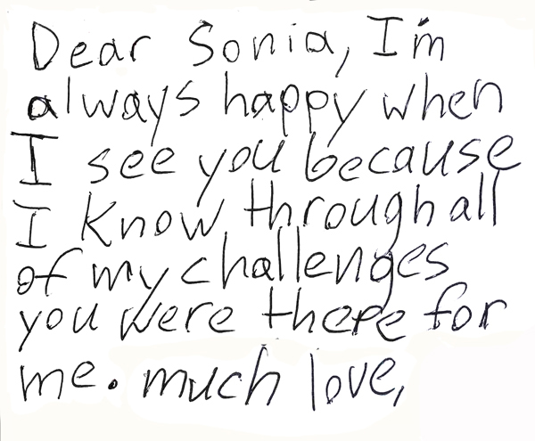 Sonia’s appreciation washed over me. I basked in it; because I had never yet found a way to thank her for all that she did for my son.