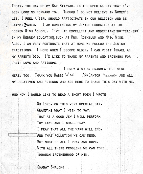 This is a picture from when I was 13-years-old, at my Bat Mitzvah. I hired a photographer for my childrens’ events. I only have two photos from that day. Perhaps, I will find more pictures someday at their old apartment.