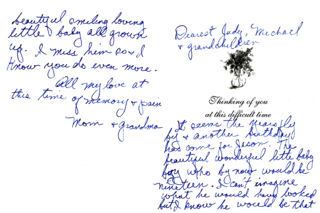 I decided to mention Jason’s impending birthday. I’ve lived through many of those since his death in 1992; eighteen of them, to be exact.