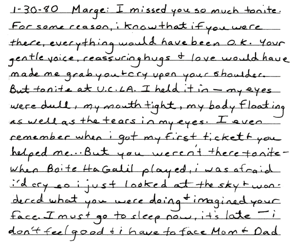This was a wonderful time in my life. When Marge left to go to Israel on an extended trip, I knew I would miss her.