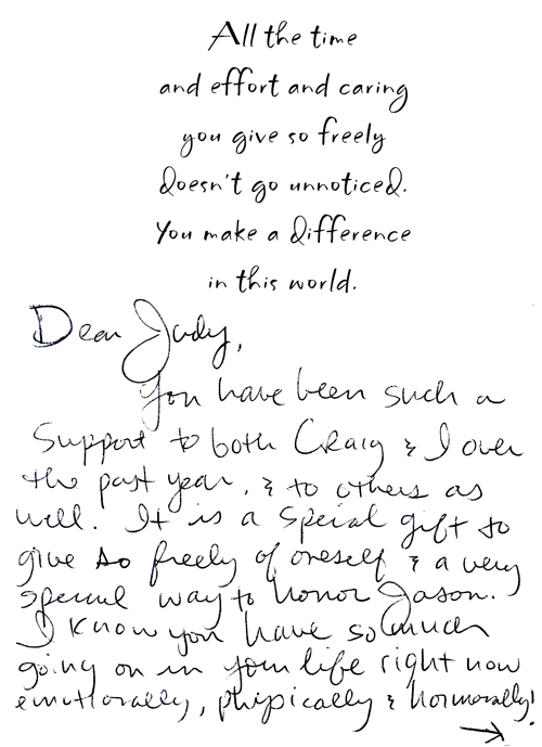 I mentioned in passing something that has been quite momentous for me. I lived for a long time watching videotapes of Jason – it kept me going. However, for the last several years they have been misplaced. I don’t know where they are, or if I’ll ever find our box of videotapes again. It’s a long story, however, I’ve accepted it and that is huge for me.