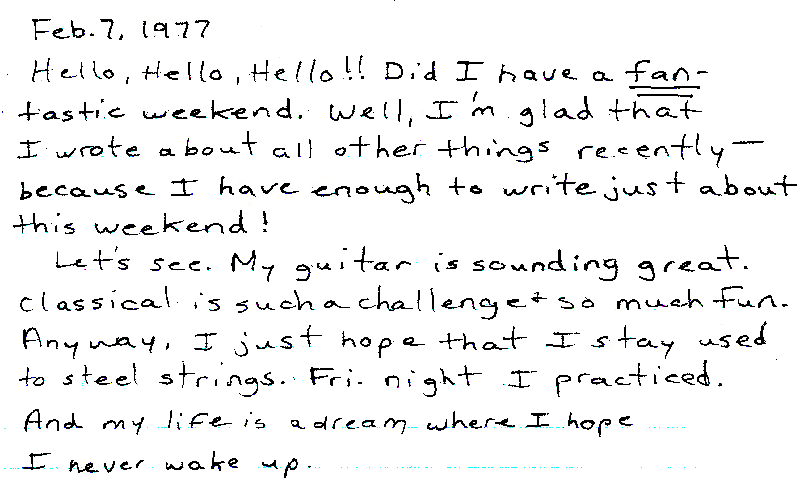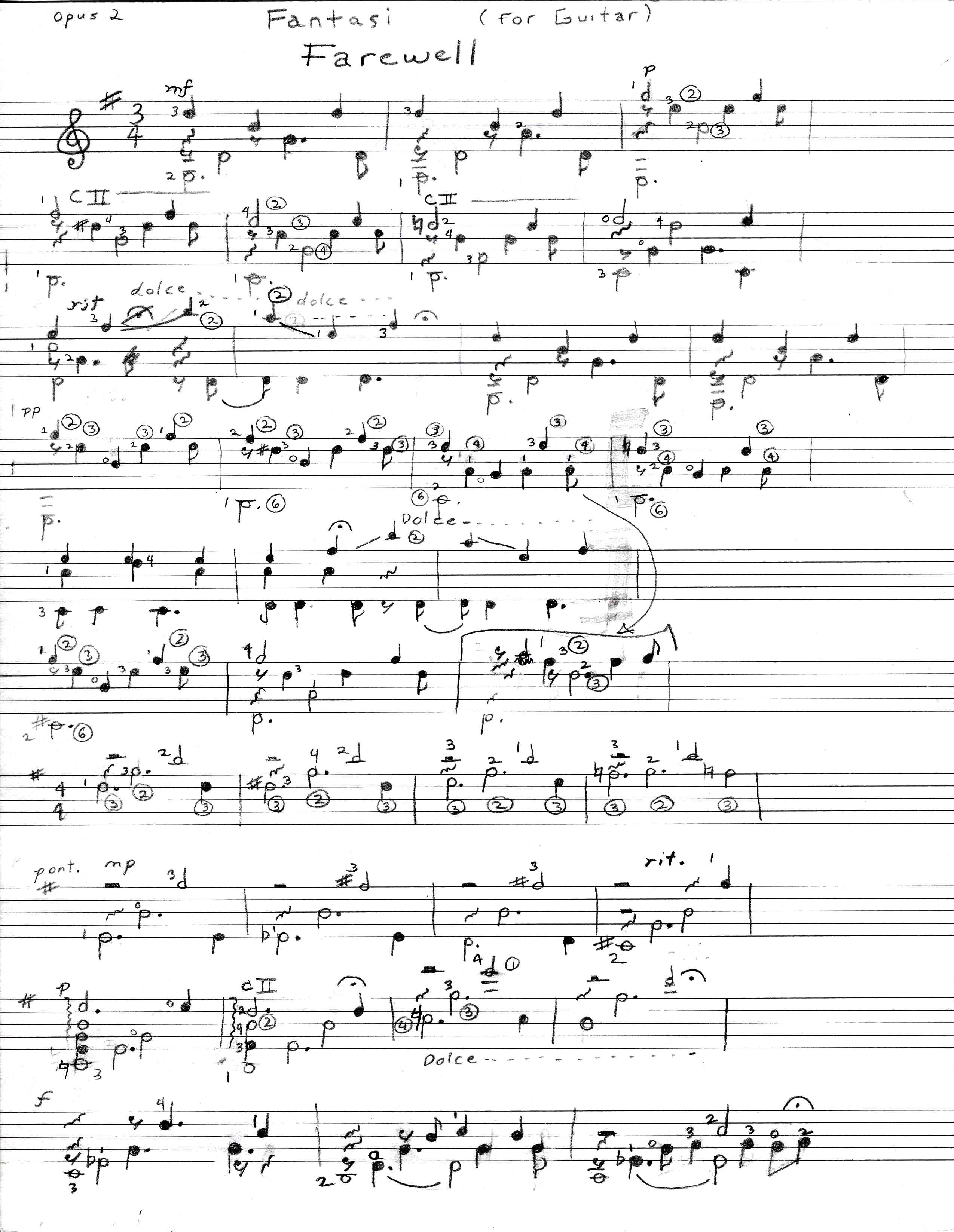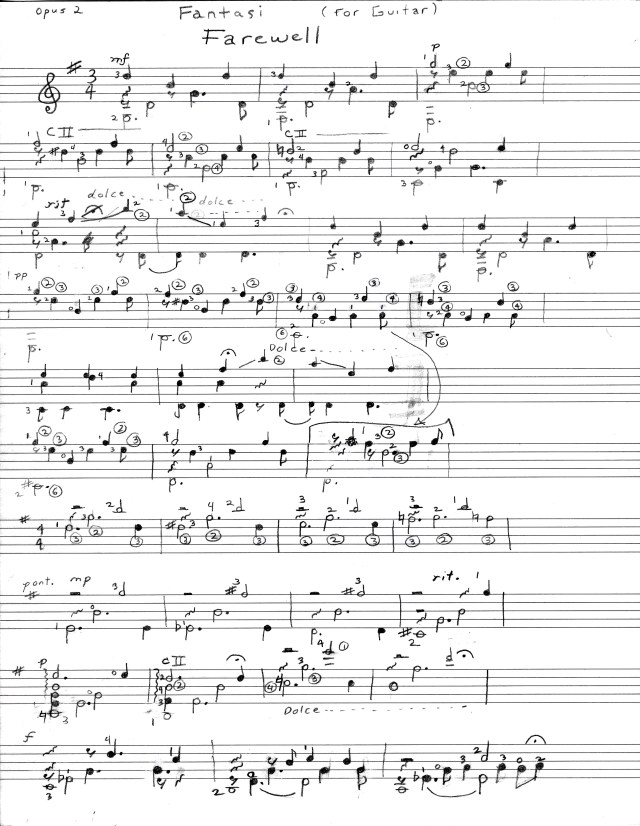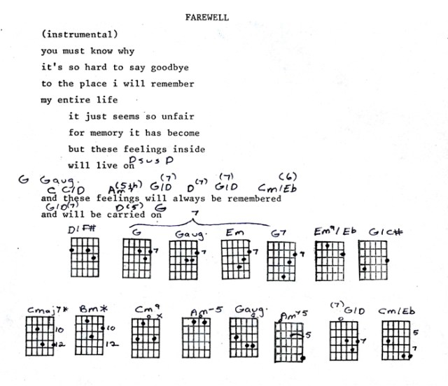 When I was seventeen, I was composing songs whenever possible. In addition to songs with lyrics, I composed a few interesting, guitar solos; one in particular was my favorite. I called the song “Farewell,” after composing lyrics for it. The words never seemed to flow well throughout the entire piece.