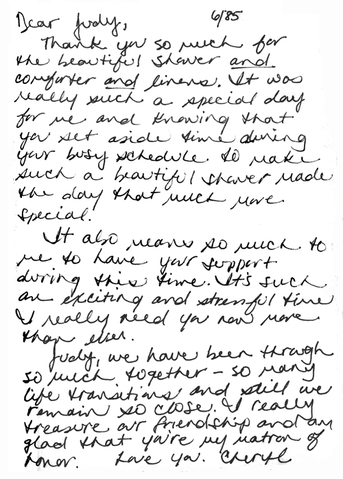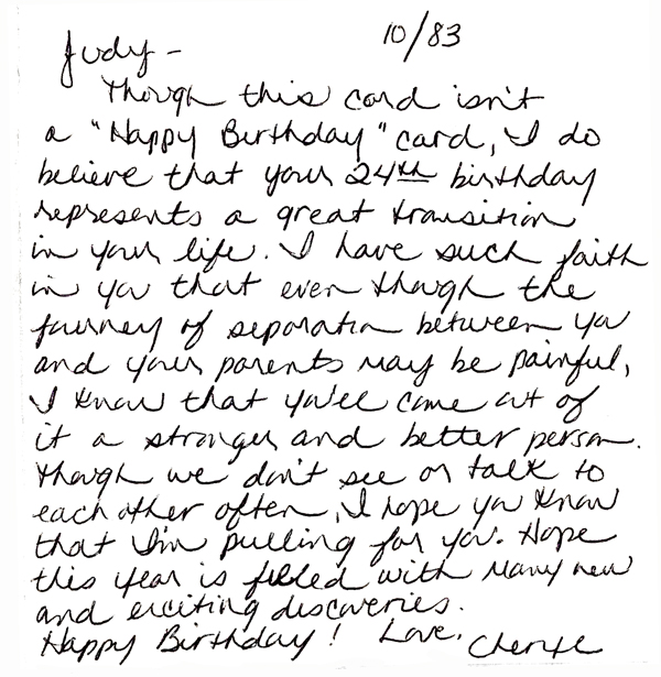 She had lived far away. We seldom spoke or saw each other much over the years. I tried to convince myself that it was sadness for the nostalgia of my youth. Preparing for this post meant I went through my memorabilia box again. Reading all of her cards and letters again hit me hard. Would I ever feel that way about anyone in my life ever again? I decided that becoming “my own best friend” was the answer. It was time for me fill myself up with the gift that I was given. My gratefulness to God was endless.