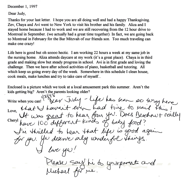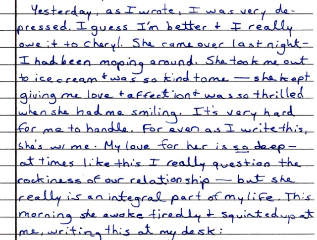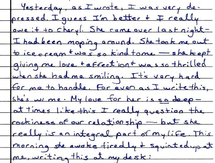 I adored Cheryl, and fondly remember what great times we had before I got married. She deeply shared my music with me.