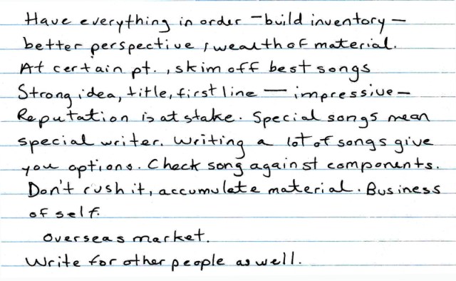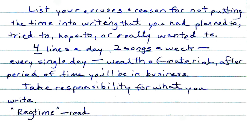 A few days later, I tried to sing a line or two with my chords. It didn’t fit. I tried again the next day. Two lines worked, and I was able to create a perfect rhyme that didn’t cause the meaning to stray.