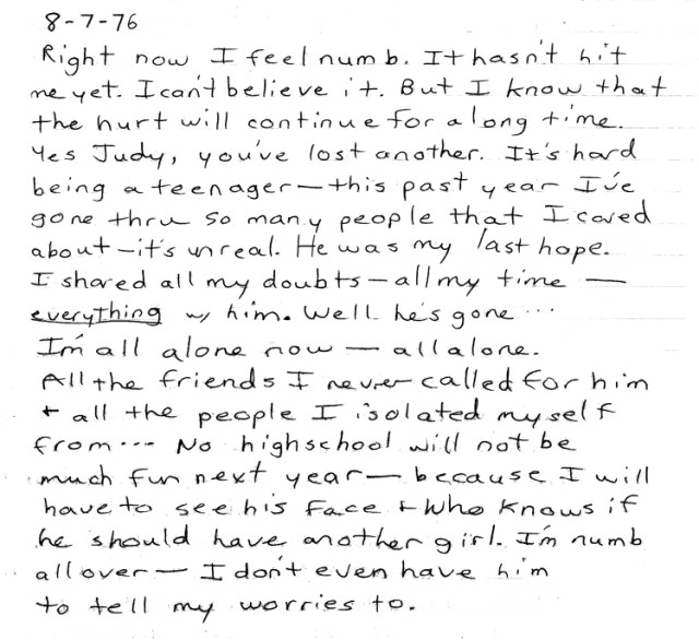 A page from my diary in 1976 – I was seventeen-years-old. Such insight I have now! How could I think “he was my last hope?”