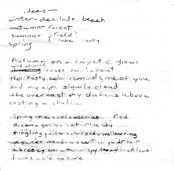 Autumn Recollections was my second “breakup” song; I felt deeply saddened after breaking up with my red-haired boyfriend. I actually went back to my diaries once again, to find some entries about that experience.