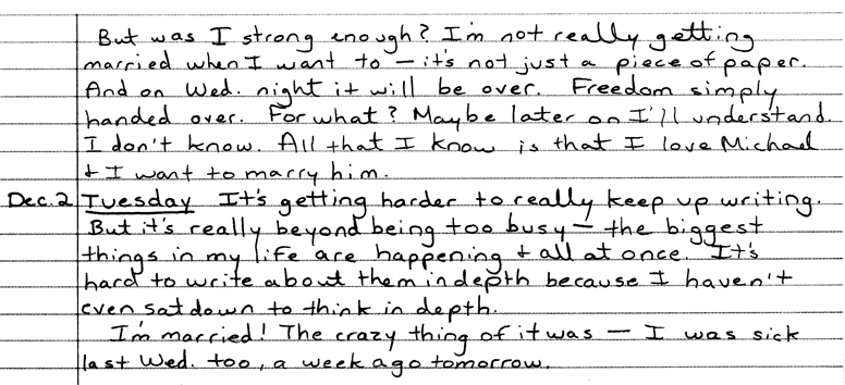 When I got married, I certainly embraced the ”romantic love concept.” My songwriting and diary entries were so innocent. I was very immature.