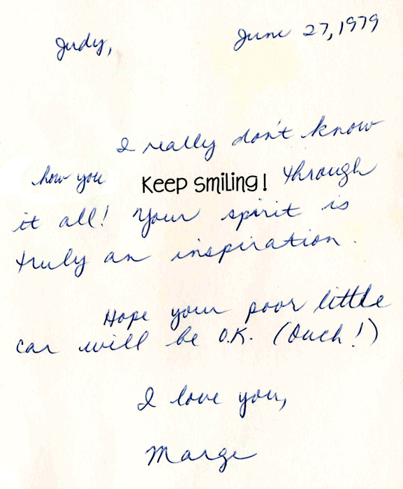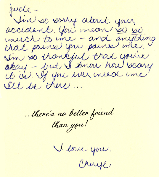 My friends rallied around me after that car accident. Marge was even worried about my poor car (It was totalled).