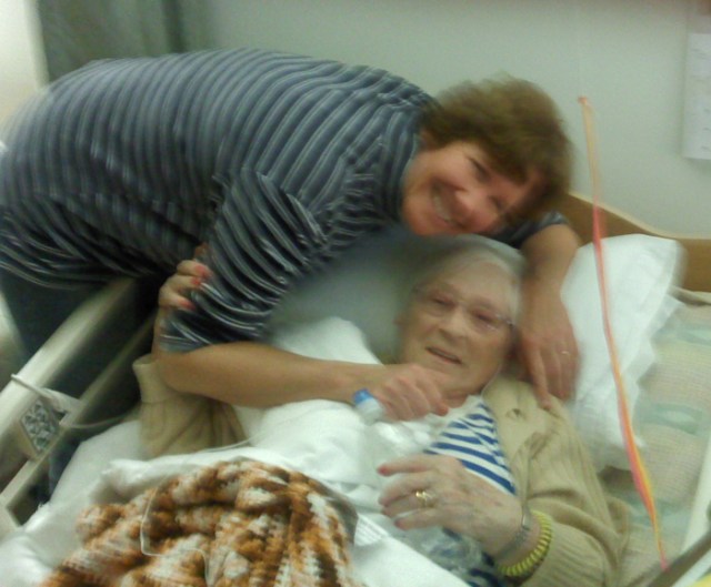 Judy, guess what? We put her in a wheelchair without pain and we are in the dining room. She’ll get lunch here with everybody. She’s really happy because it seems like nothing happened. I’m happy too!!!!