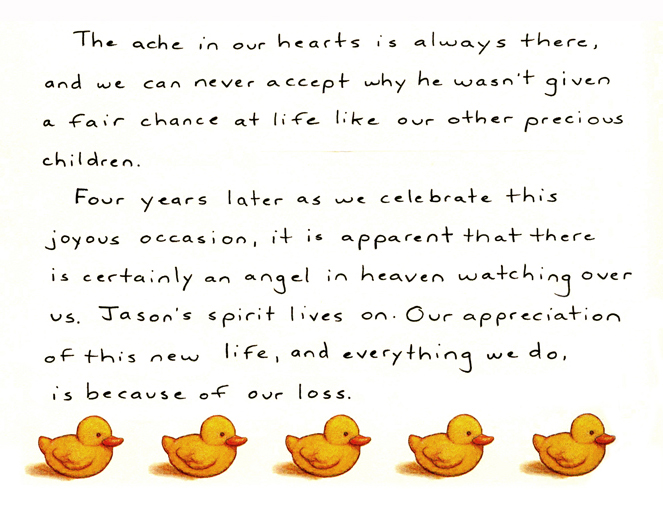 If it’s okay with you, I would like to share some of your writing with friends, who although never lost a child, stuck by me through my grief. Even though they were always there for me, I never was able to express to them how I really felt. Since my journey through the grieving process is so similar to yours, I would like them to read it so they could have a better understanding of what bereaved parents go through. It will be interesting to hear their thoughts.
