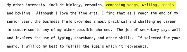 When I received a secretarial award in my senior year of high school, I had submitted my “biography.” More to follow at the end of this post.