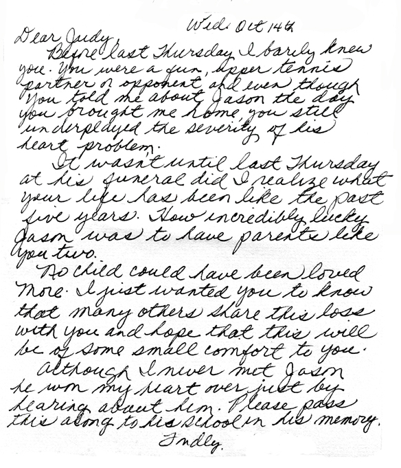 A sympathy card I received after my 5-year-old son, Jason, died in 1992. This card is dated October 14th, which is my birthday.