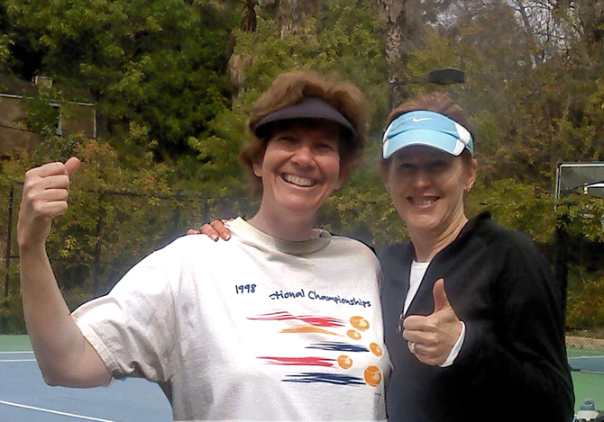 I wore my USTA T-shirt the other day when I played tennis. It was from when I went to Sectionals – oodles of years ago. My friend, Debby, is on my right.