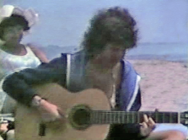 An artistic, filtered photo of me playing my guitar at the beach with my mother on my left. I could be playing the song “Waterfalls” on my old, classical guitar. I’m probably 19 or 20 in that picture.