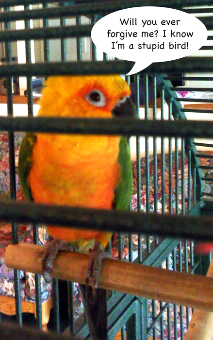 1. I was bitten by my conure parrot and my guitar fingers were maimed! I think my grouchy parrot hasn’t had enough showers with me lately.