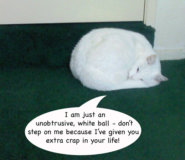2. That white cat is still regurgitating presents for me to clean. I could have put on my good list that I have learned not to step in those “gifts!”