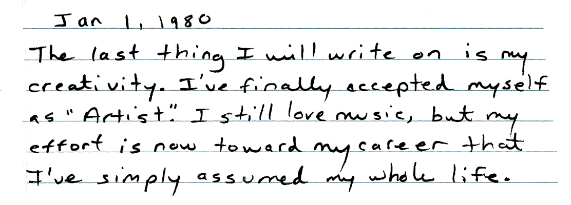 She carried her first guitar everywhere until it became sandy and worn. As she “matured” her music began to fade away. Her creativity was now focused upon her art career.