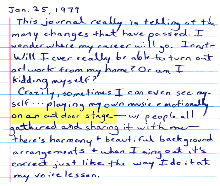 I stepped into the night air, and a vision came over me. I was playing my music for a lot of people on a large stage.