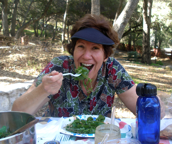 Our hike was downhill going and uphill on the return. As we trudged back, I was looking forward to lunch. Hiking always made everything taste great. Certainly, I knew it would be heavenly to have a picnic. But I have to be honest; I was wary at first. Would the fennel impart a taste strong enough to make the salad taste like licorice? Would mustard greens be bitter?