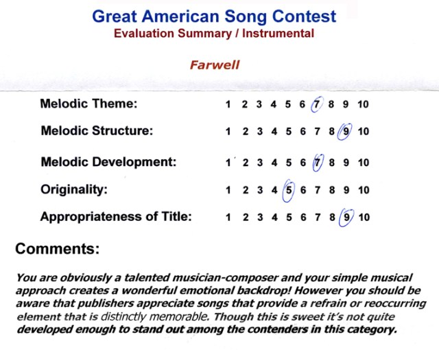 This is funny – my song is FAREWELL, not FARWELL! How could they give the title such a good rating with it misspelled?