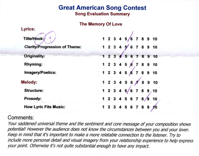 I didn’t need a song contest to prove the worthiness of my musical compositions.