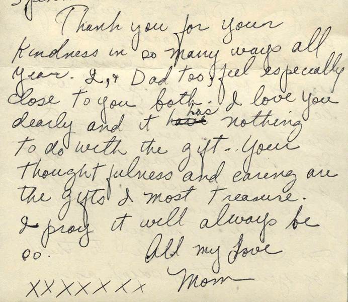 A thank you card from my mother I came across while writing this story. She prayed I would always continue to be thoughtful and caring.