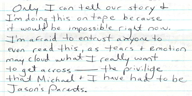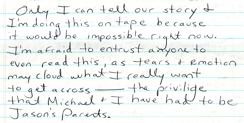 A paragraph from the eleven pages I wrote and read at Jasons funeral.