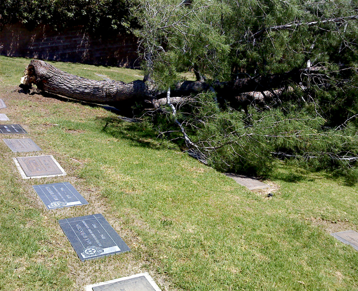 I continued trudging past many rows of gravestones; I realized none of them were for children. Then I noticed the fallen tree. I walked around it. I began to feel the heat, but a breeze helped to cool me. It was interesting, because at that moment my voice was singing the lyric line, “You’ll surround me in the breeze that’s blowing.”