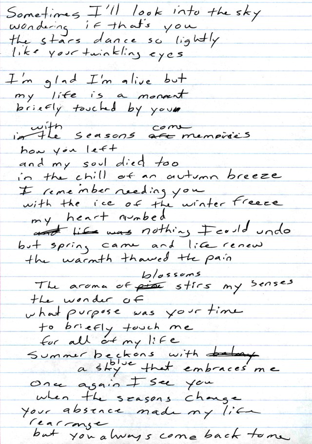 A sheet of my lyric writing “in progress.”