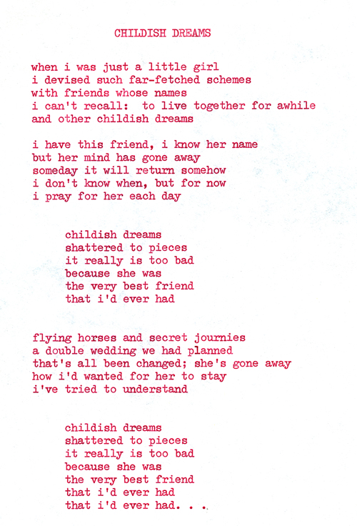 I wrote my poem while I was in high school. It resembles song lyrics by having a chorus repetition; around that time I was already writing songs.