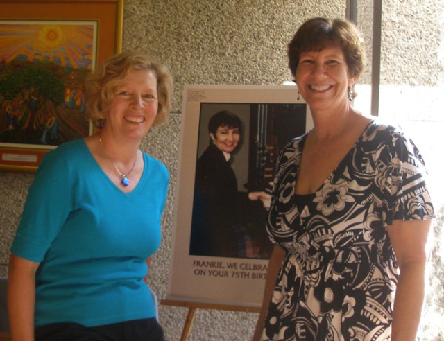 I created a poster of Frankie for the event, and below I am posing with it next to my wonderful friend Carol, whom I reconnected with a little over a year ago. The picture of Carol and I while hiking last year definitely radiates our joy.