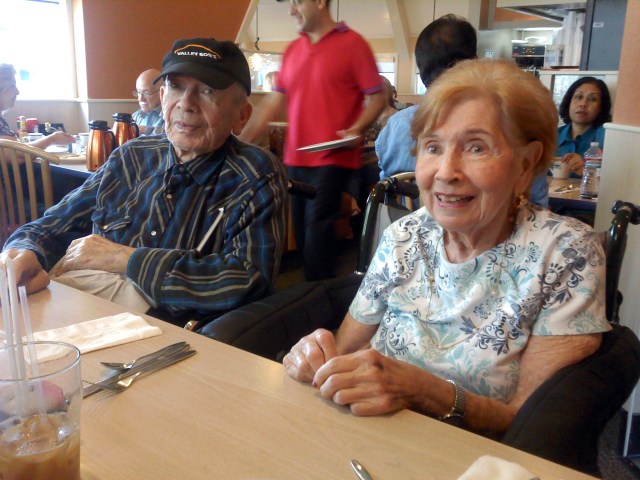 I will start with an old one of my parents and a more recent one from a weekly lunch outing. My parents’ wheelchairs are parked next to each other, but they cannot really communicate much, due to my dad’s irritability and my mother’s dementia. However, it is clear that both of them look forward to that lunch outing every week, and I am so happy to share that time with them.