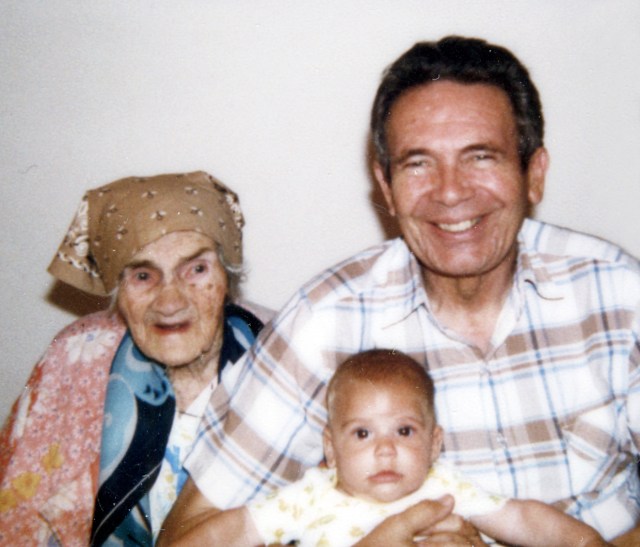 This is a rare picture of my father with his mother and one of his grandchildren. His mother never smiled and I see a lot of resemblance to her in him now.