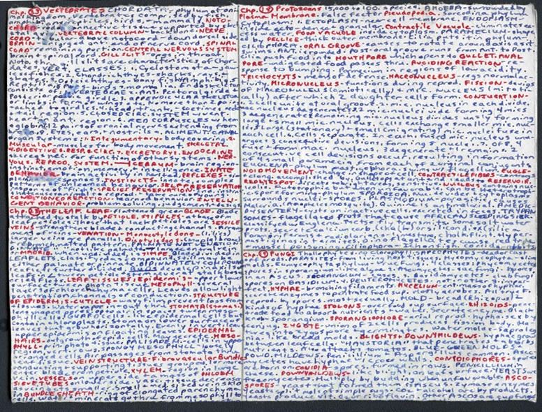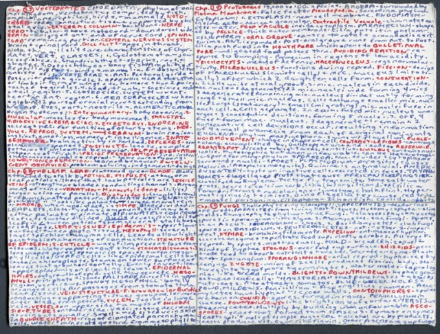 When I was in high school, I was allowed to have one page of notes for a biology test. When I found this page in my father’s memorabilia after he died – I was incredulous at my patience. I wrote on both sides of this paper, and my writing was so teeny tiny that it was unbelievable!