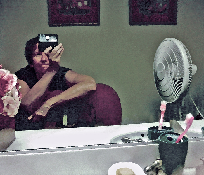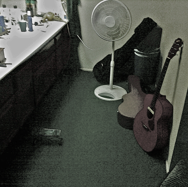 This is where I compose my songs and practice my guitar – in my bathroom. I created an artistic version of my photo. In my new apartment, I will be playing my guitar next to my bed.