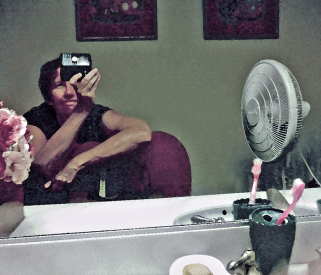 This photo is looking at the window of my big house that I am leaving. My left eye is in focus, but everything is dark. I feel a pulsating sensation and see something dark in the corner. There are tons of floaters. It will pass soon (I hope).