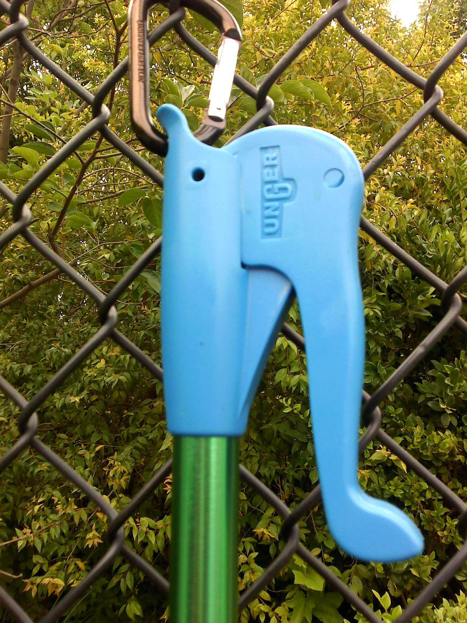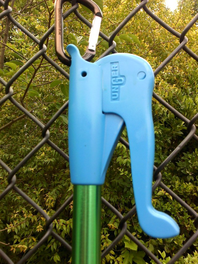 I sure miss playing tennis – it has been a long stretch for me to not play because of my eye surgeries. This image is from a claw-like device that is hanging on the fence where I play. It retrieves tennis balls from bushes. The manufacturer is UNGER. I have decided to keep my last name.