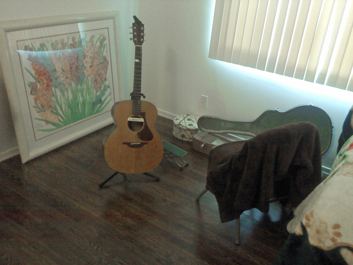 It was now three days since I had moved in. My bedroom was perfect. It held a wonderful spacious area for my guitar and music stand. Soon I’d set up that space with equipment to record vocals and my second book.