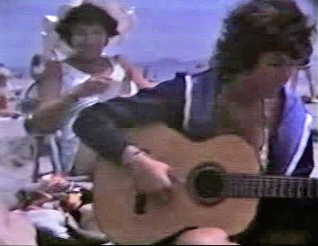 In this picture, I’m playing guitar while on vacation. I’m 19 years old and probably writing a song while my mother looks on in the background.