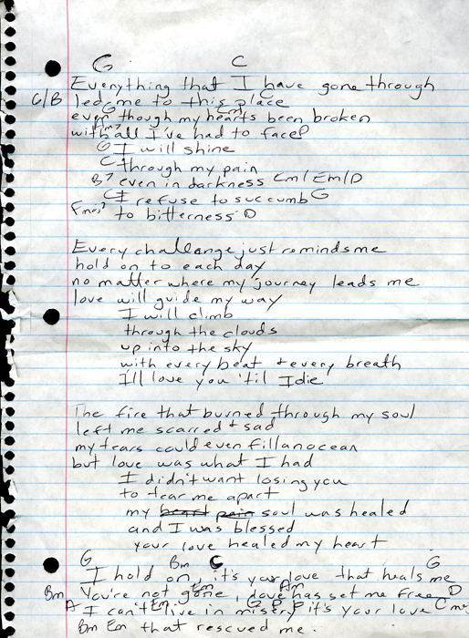 Needing to be rescued sounded more desperate and more appropriate for my current situation, so it made sense. It led me to believe that my song’s title would therefore be “Love Rescues Me.”
