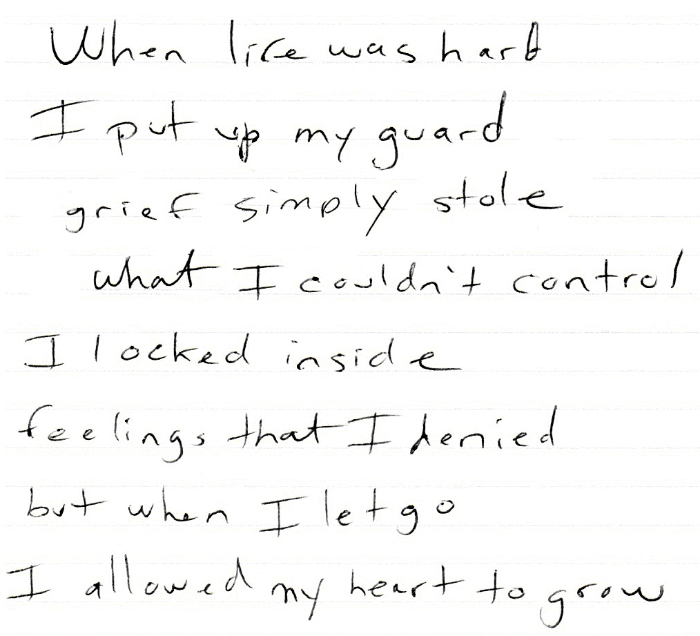 One day, I was so tired of holding all of my emotions inside and feeling discouraged about life. Gradually, I allowed myself to feel and to remember.
