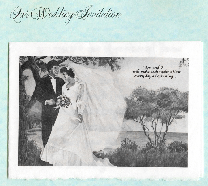 I painted the image above for my wedding invitation. The quotation is a line of lyrics from the song “Evergreen.”