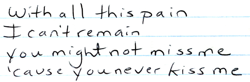 You’re right that I need additional resources to prevent my feelings from erupting. I have a lot of inner strength since I’ve begun writing, and I will tap into that to help me. My music continues to save me and I’m certain this will all be behind me one day. Either way, it’s hard being the “bad one” in this; I’m the one betraying my faithful husband. Writing a song like I did wasn’t very nice.