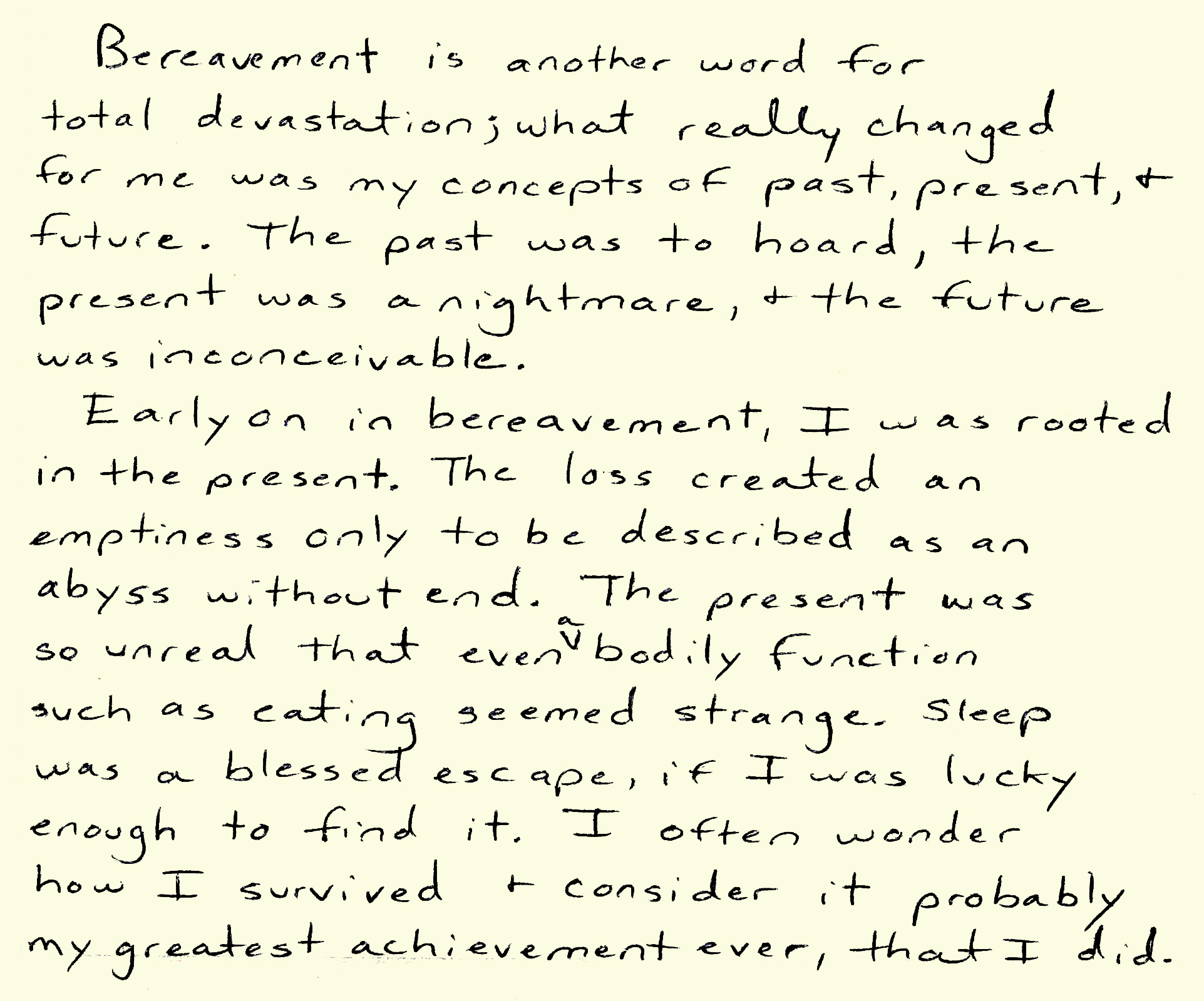 Grief is isolation in the purest sense. I surrounded myself with fellow grievers and although it helped me to survive, the exquisite agony was always there. And such a burden it was. It left me unable to think without reliving his death for years and years. I hate to say how long it took me to “feel better.” I do not say recovered. There is no recovery from this.
