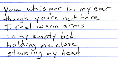 I just wanted to tell you how much I loved your music on the CD you mailed to me. It is beautiful. Some of the songs made me feel as though they were written for me. Thank you so much for sharing your music with me. You are a very special lady to not only read my writing and share it the way you have, but also in the kind way you shared your heart.