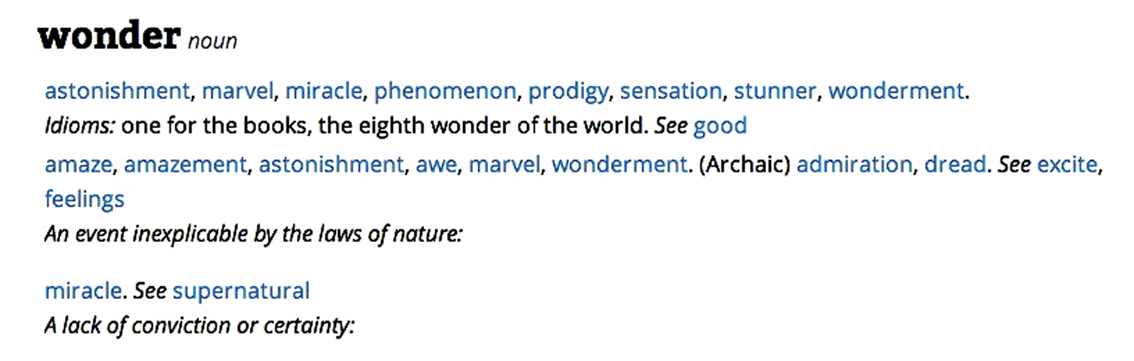 As I pose my question to God, I’m also in awe, which is another meaning for the word wonder. Many of the definitions for wonder are uplifting. A word listed as opposite of wonder happens to be fear.